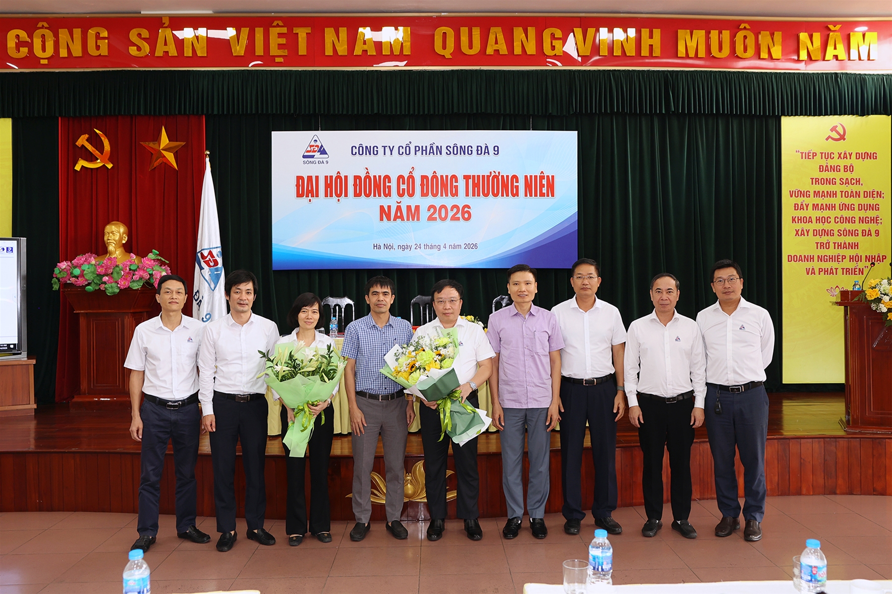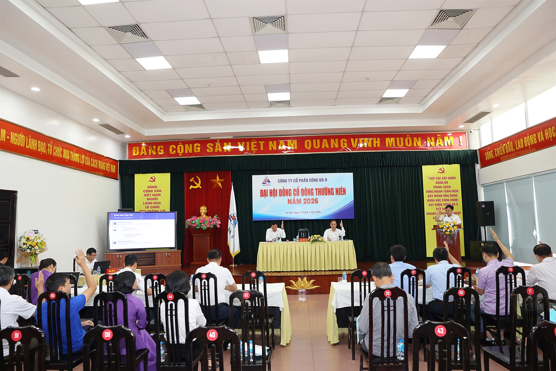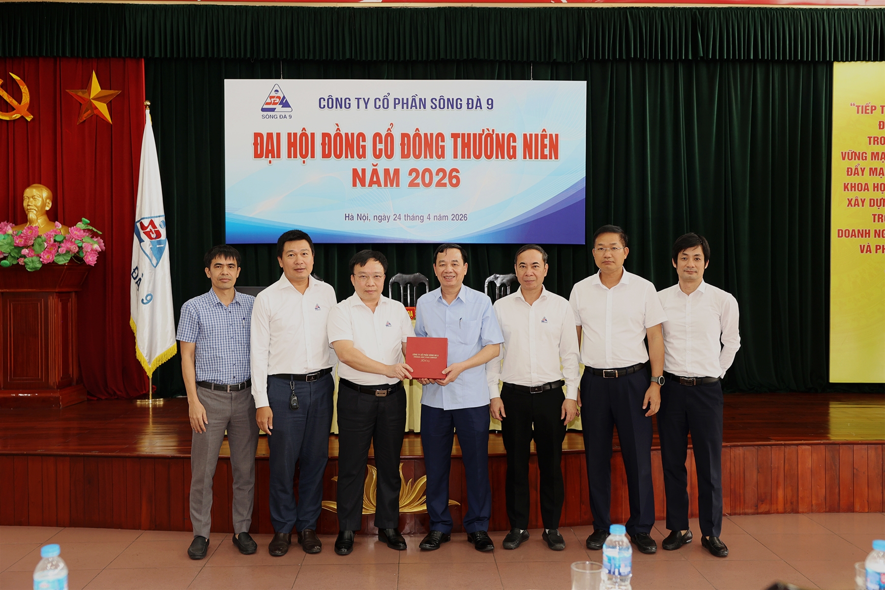 Sáng ngày 24 tháng 04 năm 2026, tại Hội trường tầng 9, tòa nhà Sông Đà 9, đường Nguyễn Hoàng, Từ Liêm, thành phố Hà Nội, Công ty Cổ phần Sông Đà 9 đã tổ chức thành công Đại hội đồng cổ đông (ĐHĐCĐ) thường niên năm 2026. Đại hội có sự tham dự của các cổ đông và đại diện theo ủy quyền, đại diện cho 78,80% vốn điều lệ của Công ty – đủ điều kiện tiến hành theo quy định của pháp luật.