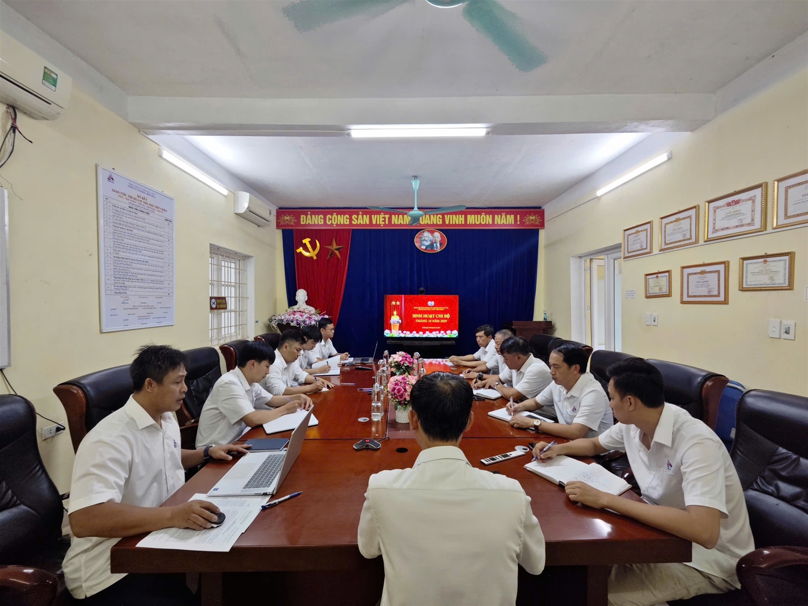 Thực hiện nghiêm túc Chỉ thị số 50-CT/TW ngày 23/7/2025 của Ban Bí thư về “Tiếp tục đổi mới và nâng cao chất lượng sinh hoạt chi bộ trong giai đoạn mới”, ngày 03/10/2025, 100% chi bộ trực thuộc Đảng bộ Công ty CP Sông Đà 9 đã đồng loạt tổ chức sinh hoạt định kỳ.