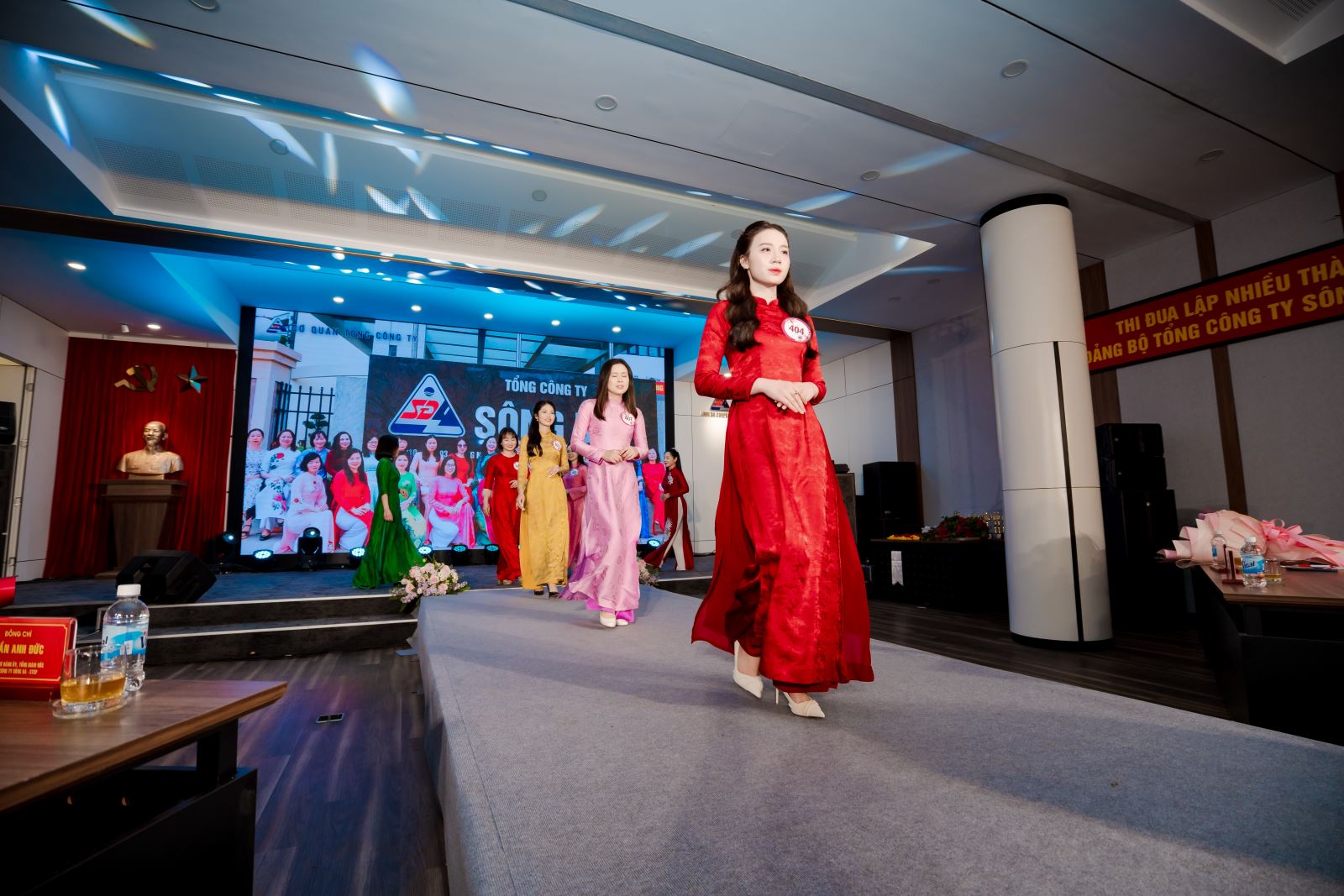 Phần thi trang phục áo dài của nữ CBCNV Công ty CP Sông Đà 12.