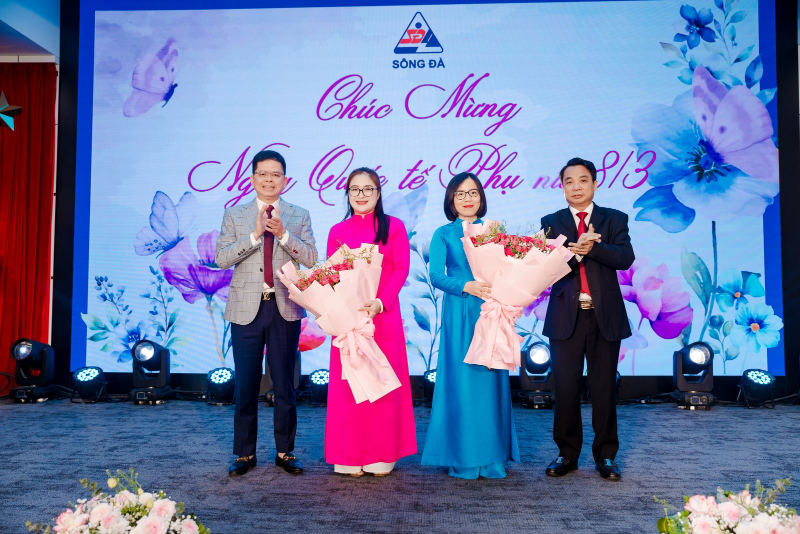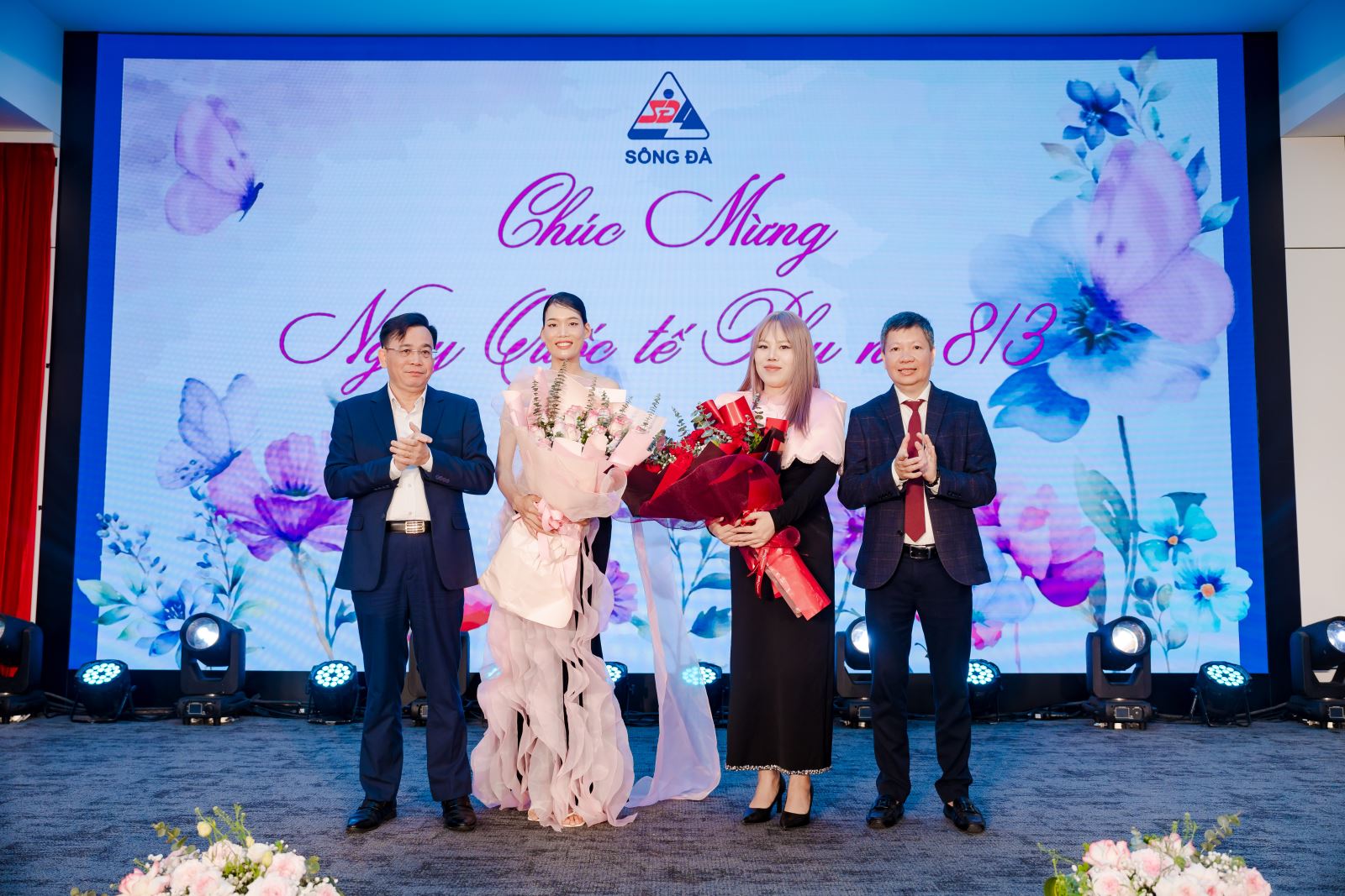 Lãnh đạo Tổng công ty tặng hoa chúc mừng 8/3 Giám khảo nữ của chương trình.