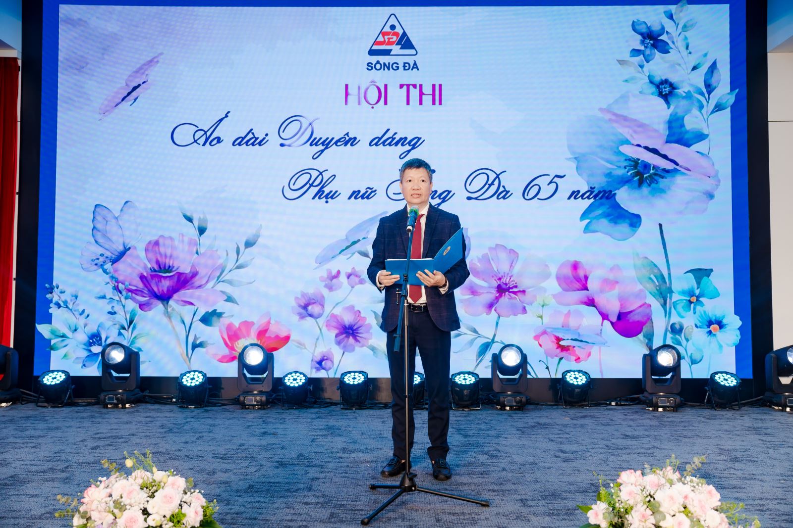 Phát biểu tại chương trình, Đồng chí Trần Văn Tuấn – Bí thư Đảng ủy, Chủ tịch HĐQT Tổng công ty - Đại diện lãnh đạo Tổng công ty ghi nhận và biểu dương những nỗ lực, đóng góp tích cực của đội ngũ nữ cán bộ, người lao động trong quá trình xây dựng và phát triển của Tổng công ty Sông Đà. Lãnh đạo Tổng công ty nhấn mạnh: “Tổng công ty tổ chức Hội thi Áo dài duyên dáng – Phụ nữ Sông Đà 65 năm là một hoạt động văn hóa đầy ý nghĩa, góp phần tôn vinh vẻ đẹp truyền thống của phụ nữ Việt Nam và khẳng định vai trò, vị thế của phụ nữ Sông Đà trong giai đoạn phát triển mới. Trong suốt chặng đường 65 năm xây dựng và trưởng thành, phụ nữ Sông Đà luôn phát huy truyền thống đoàn kết, trách nhiệm, năng động và sáng tạo, đóng góp quan trọng vào việc hoàn thành các nhiệm vụ sản xuất kinh doanh của Tổng công ty”. Thay mặt Lãnh đạo Tổng công ty, đồng chí Trần Văn Tuấn nhiệt liệt chúc mừng và gửi tới toàn thể chị em phụ nữ lời chúc sức khỏe, hạnh phúc và thành công nhân Ngày Quốc tế Phụ nữ 8/3. Mong rằng các đồng chí luôn giữ vững tinh thần tự tin, chủ động, sáng tạo; tiếp tục khẳng định năng lực, đóng góp nhiều hơn nữa vào sự phát triển chung của Tổng công ty trong giai đoạn chuyển đổi và hội nhập.