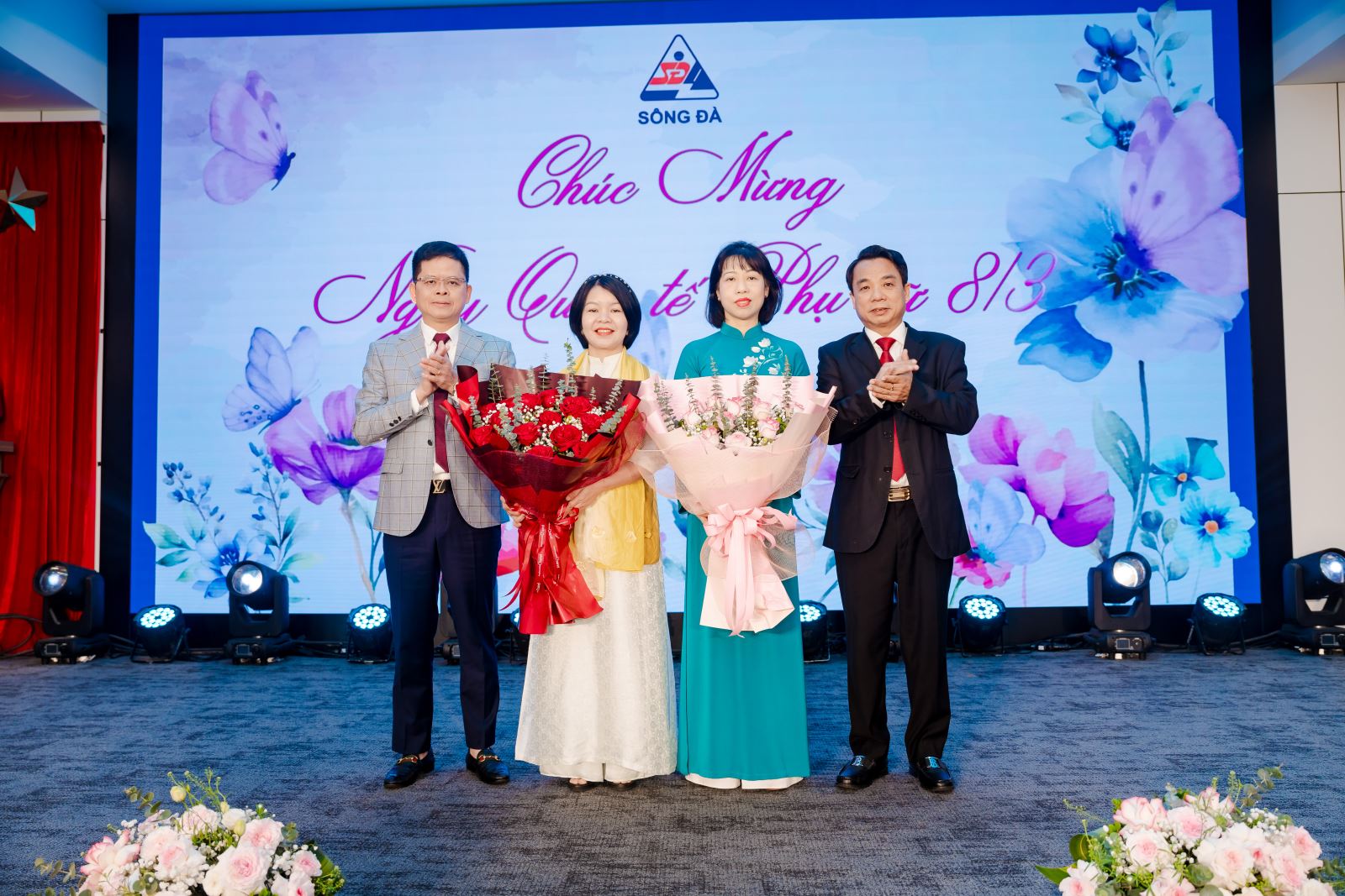 Lãnh đạo Tổng công ty tặng hoa chúc mừng 8/3 Giám khảo nữ của chương trình.
